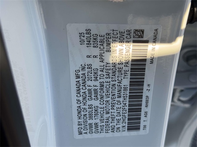 VIN 2HGFE2F54TH531861