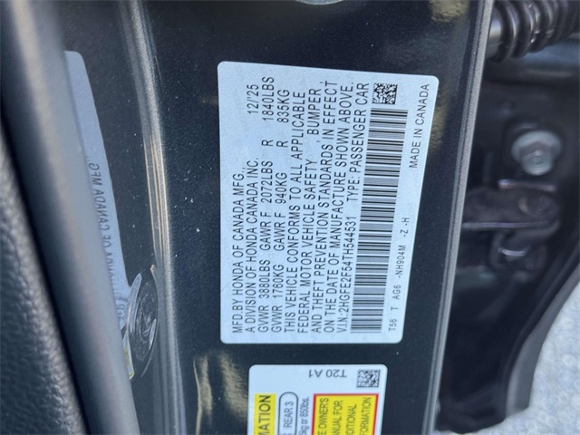 VIN 2HGFE2F54TH544531