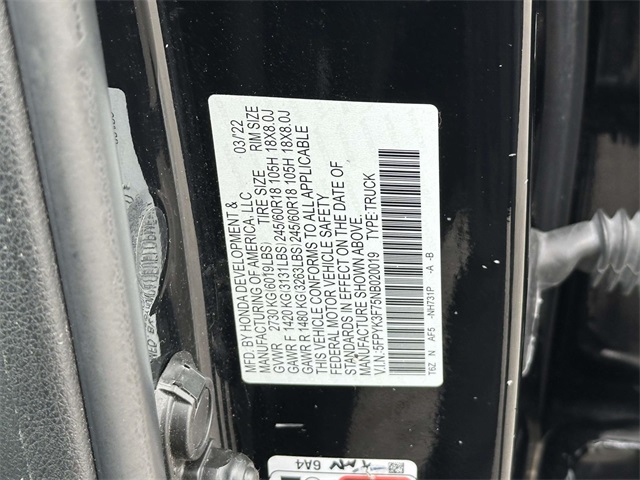 2022 Honda Ridgeline Crystal Black Pearl AWD 3.5L V6 SOHC i-VTEC 24V 9-Speed Automatic